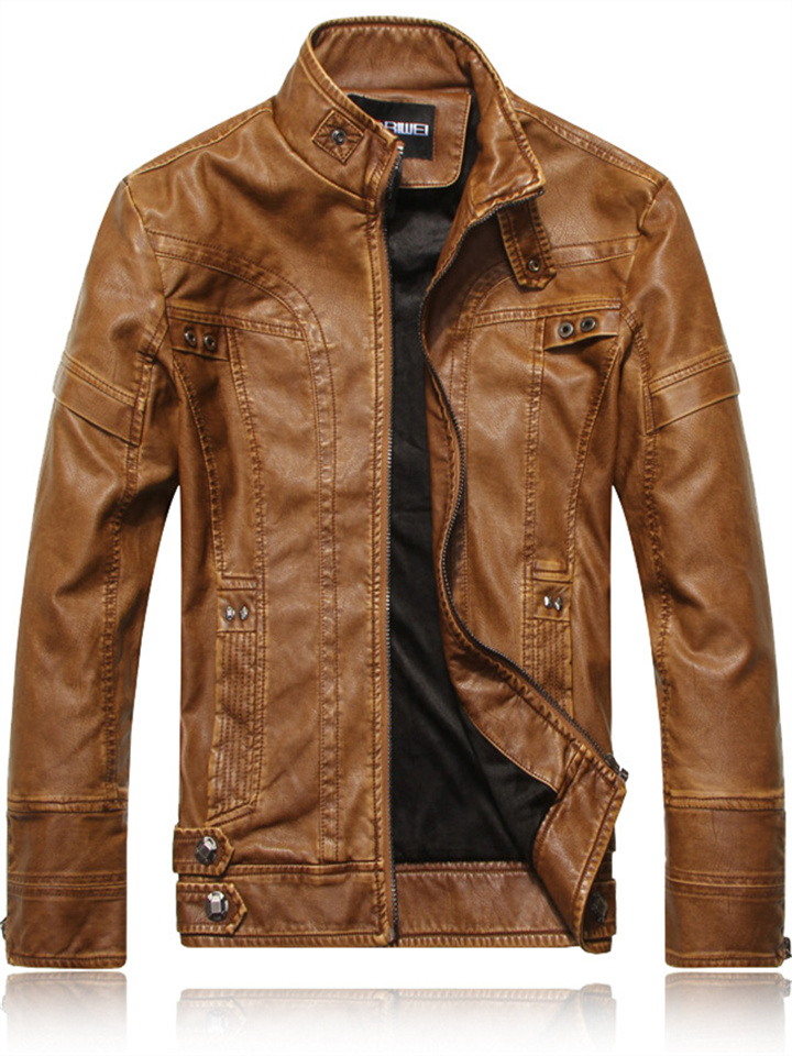 Men's Leather Jacket Fall and Winter PU Leather Jacket Collar Padded Thickened Jacket