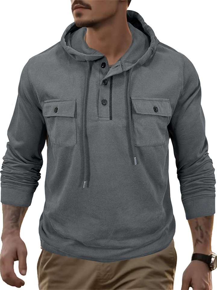 Men's Outdoor Hooded Sports Long Sleeve Drawstring Sweatshirt