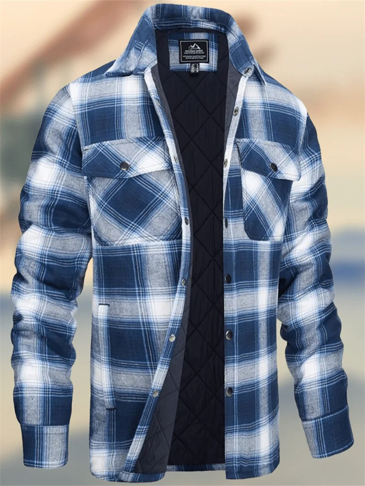 Men's Fall/Winter Thickened Cotton Checkered Long-Sleeve Relaxed Jacket