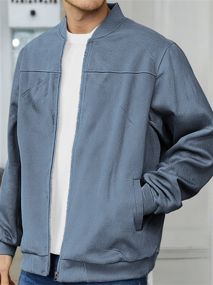 Autumn Suede Solid Color Men's Zipper Jacket Casual Vintage Long Sleeve Cardigan Outerwear