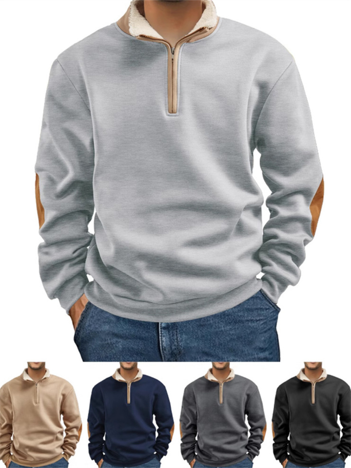 New Arrival Retro Patchwork Embroidered Men's Long-Sleeve Solid Color Hoodie
