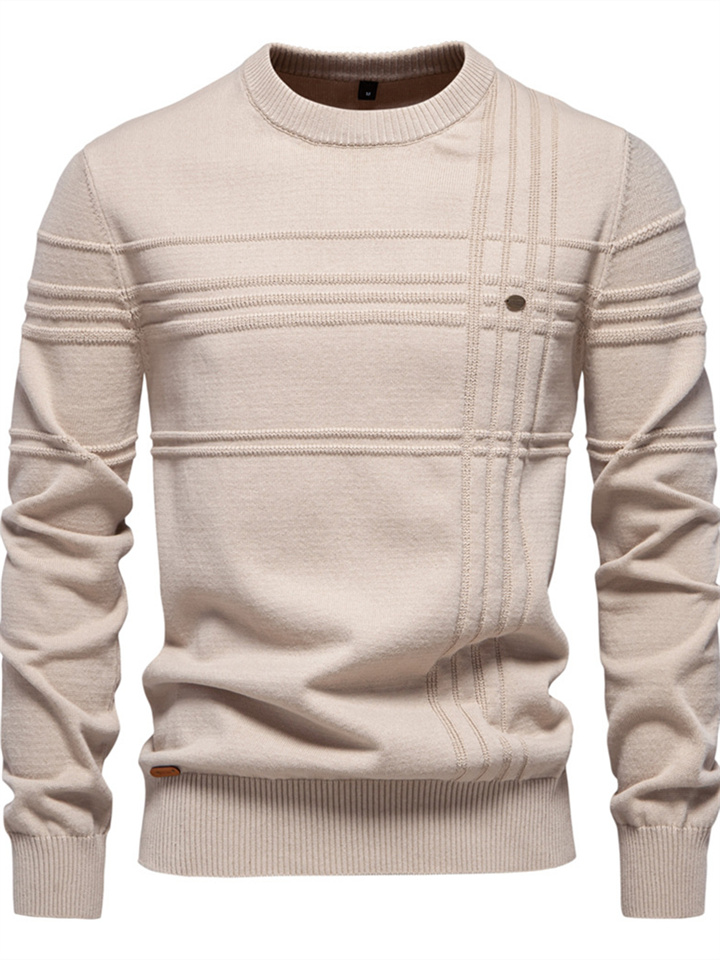 New Fall/Winter European Size Men's Crew Neck Solid Color Knit Sweater