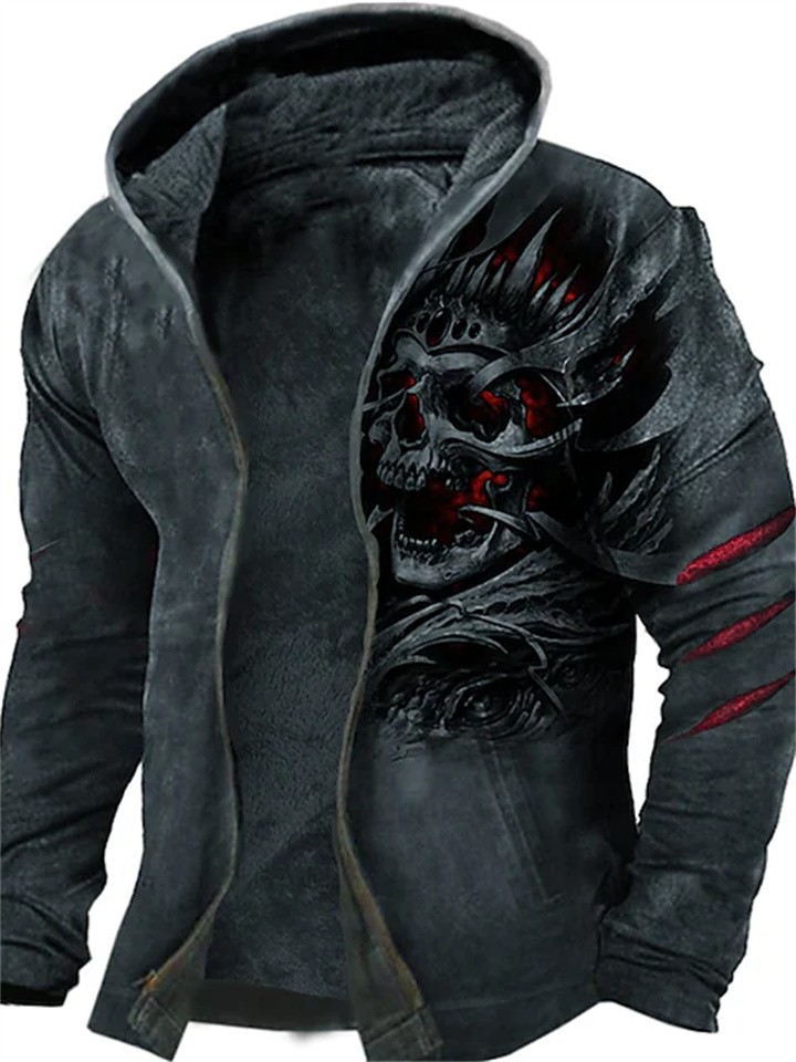 Men's Fleece Jacket Full Zip Hoodie Fleece Hoodie Sherpa Jacket Dark Gray Hooded Skull Graphic Prints Zipper Print Sports & Outdoor Daily Sports 3D Print Fleece Streetwear Designer Casual Winter