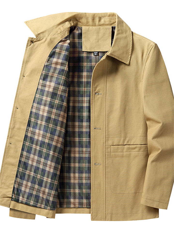 Men's Jacket Windproof Daily Wear Vacation Going out Single Breasted Turndown Streetwear Stylish Business Jacket Outerwear Plain Button Pocket Black khaki Army Green