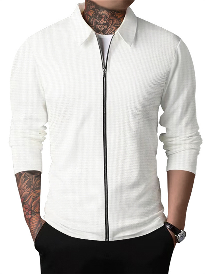 Autumn Solid Color Jacket Cardigan Men's New Zipper Jacket Casual Men's Long-sleeved Lapel Waffle Jacket
