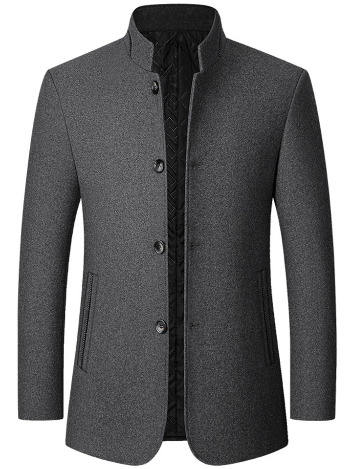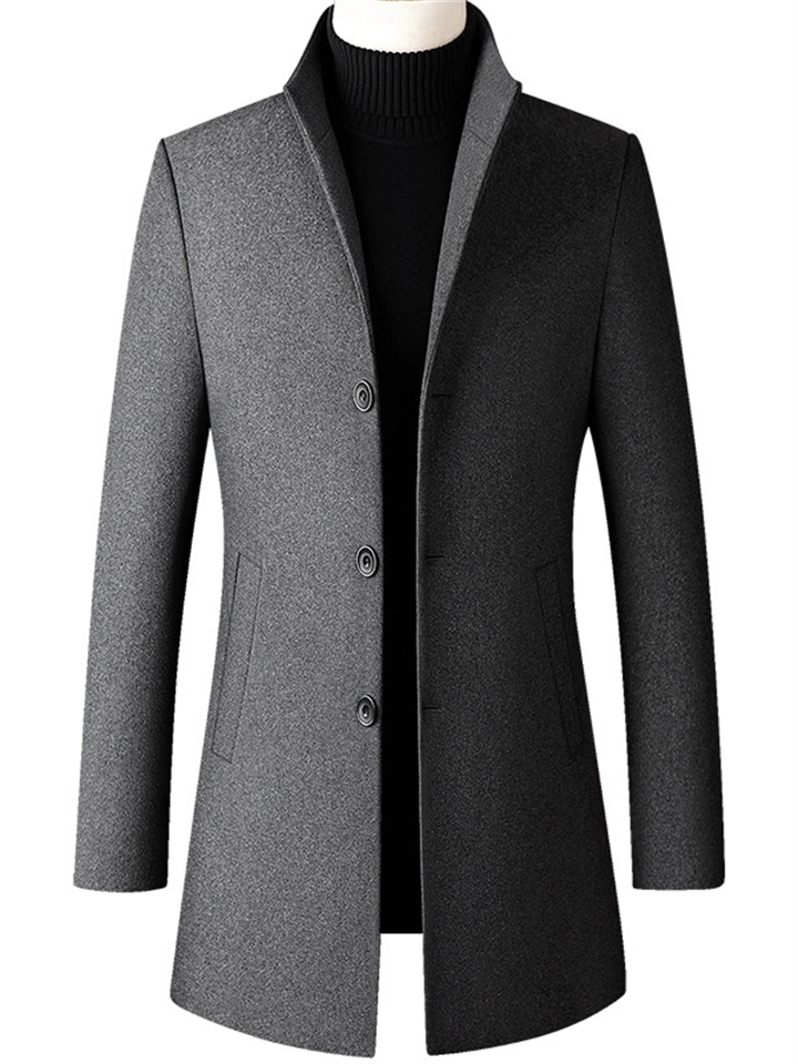 Men's Winter Coat Wool Coat Overcoat Business Daily Wear Winter Fall Wool Thermal Warm Outdoor Outerwear Clothing Apparel Fashion Warm Ups Solid Colored Pocket Standing Collar Single Breasted
