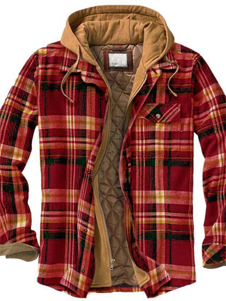 Men's Puffer Jacket Winter Jacket Quilted Jacket Shirt Jacket Winter Coat Warm Casual Plaid / Check Outerwear Clothing Apparel Green Blue Red & White
