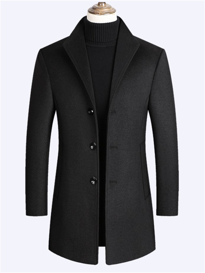 Men's Winter Coat Wool Coat Overcoat Street Business Winter Woolen Thermal Warm Outerwear Clothing Apparel Casual Solid Color Pocket Stand Collar Single Breasted