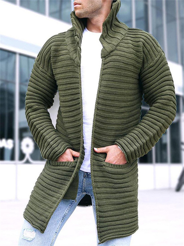 Autumn and Winter New Cardigan Men's Solid Color High Neck Long Sleeve Knitted Sweater Sweater Loose Type Jacket