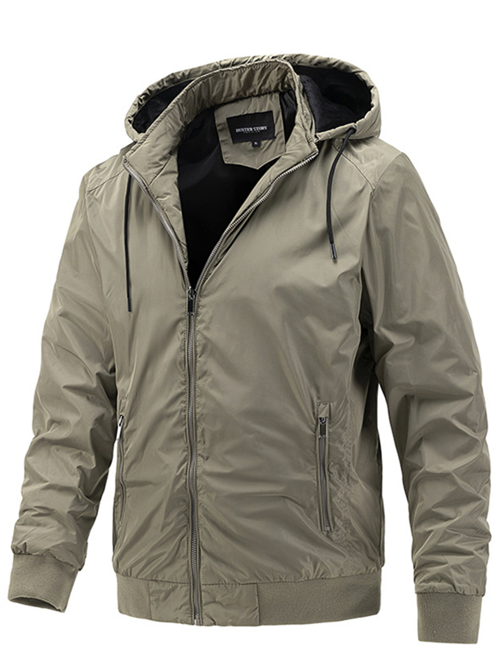 Men's Spring and Autumn Removable Hooded Jacket Casual Sports Thin Cotton Solid Color Coat Trend Men's Clothing