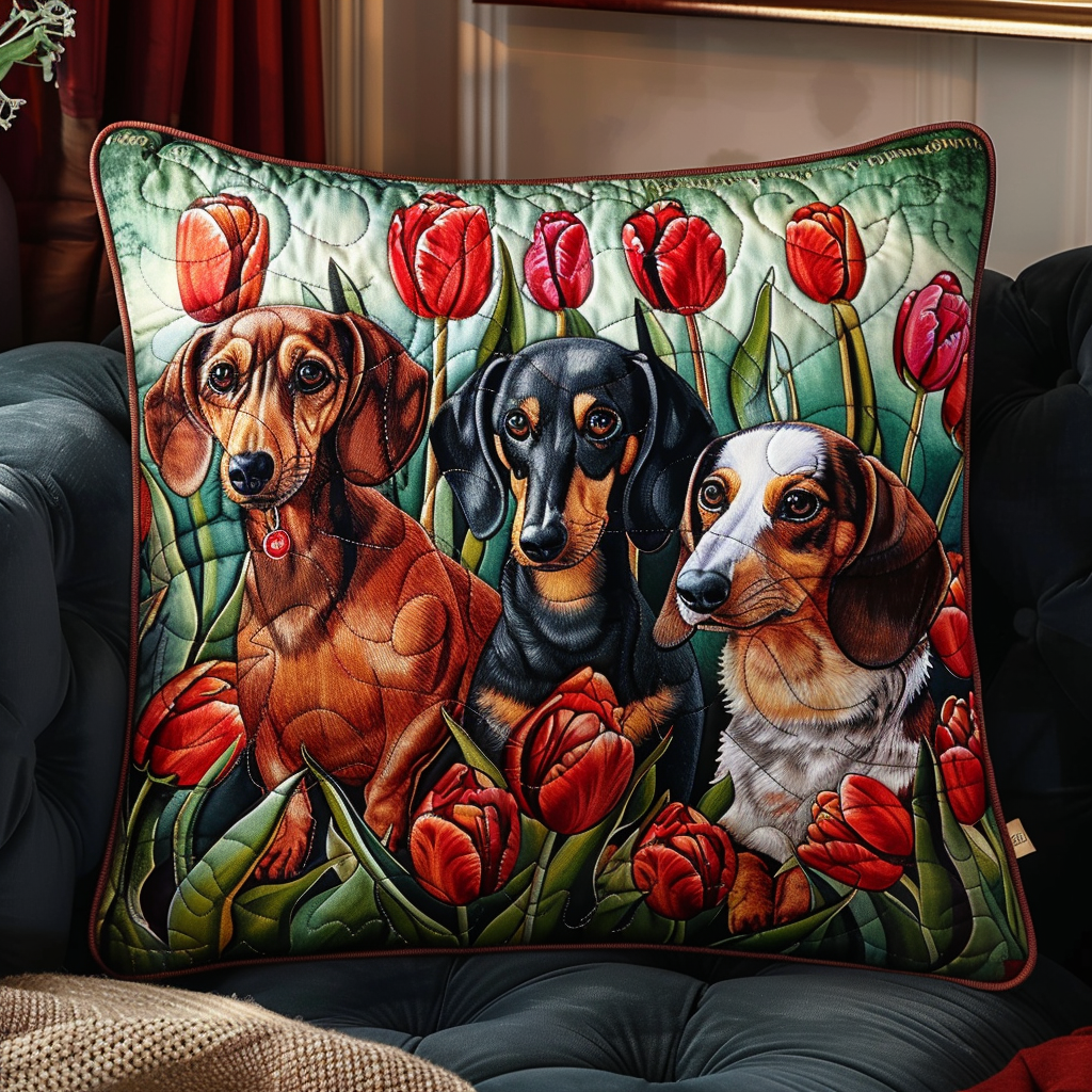 Luxurious Tulip Throne Dachshund Quilted Pillow Case NCU0TL123