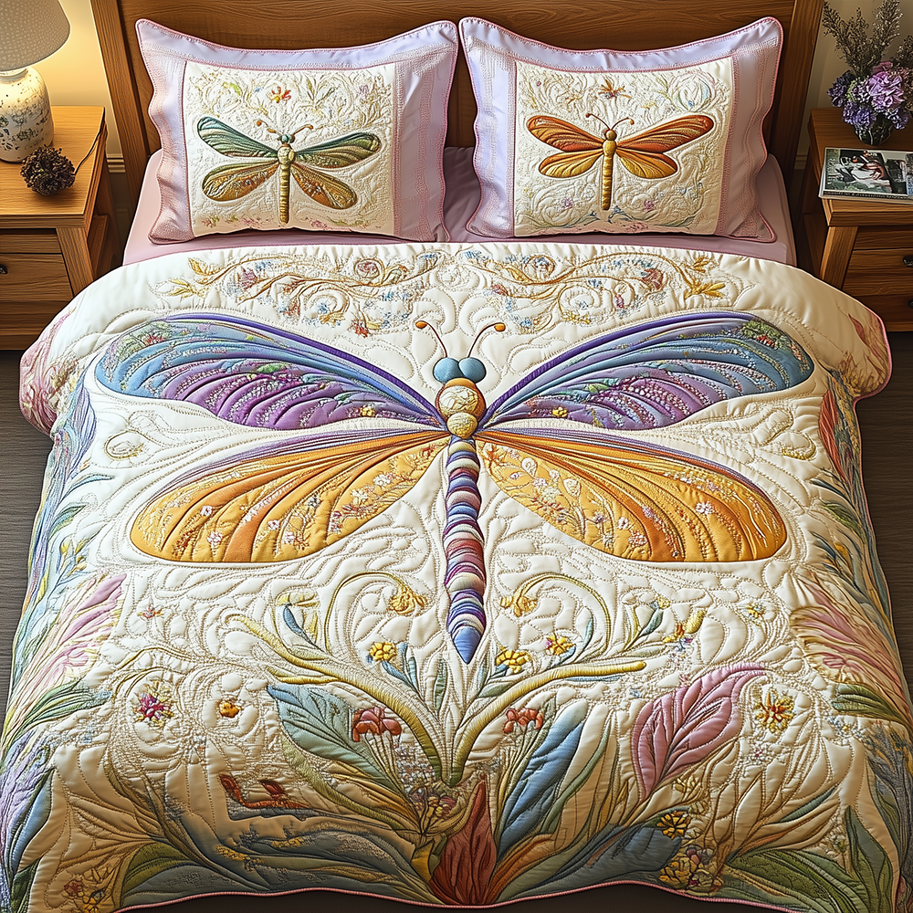 Dragonfly Dances 3-Piece Quilted Bedding Set GFTOAB2902