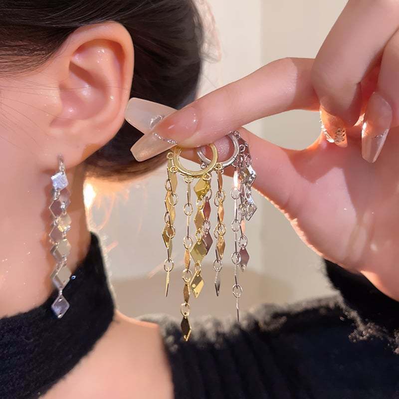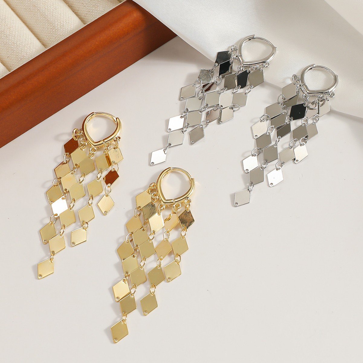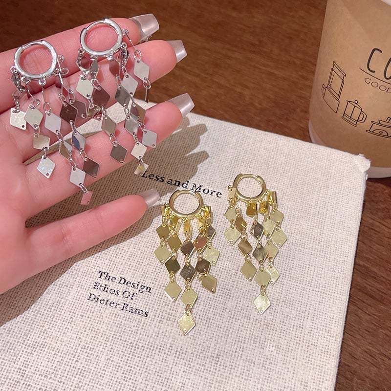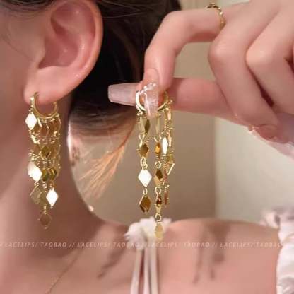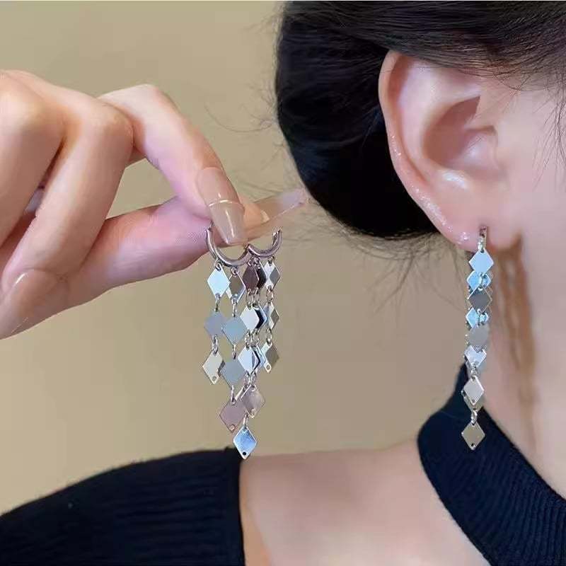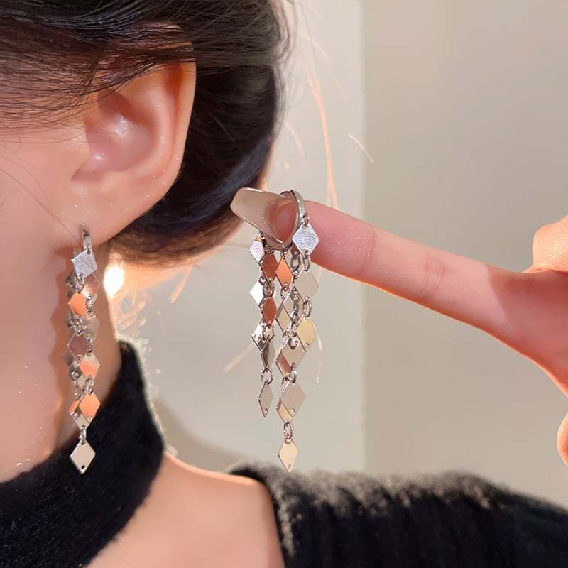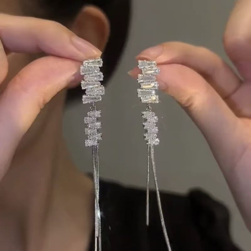 Crafted with cascading square and bar-shaped pendants. each earring catches light beautifully as it sways—bringing life and sparkle to your every gesture.