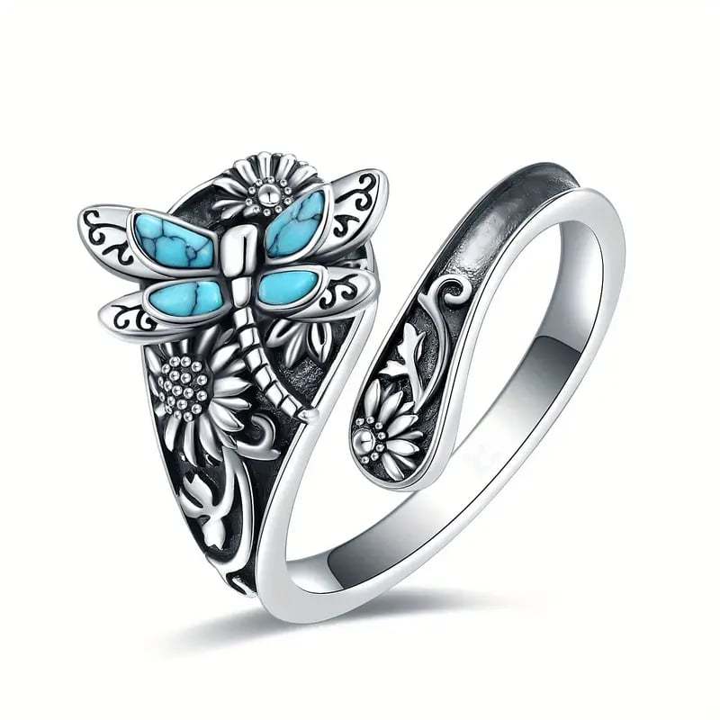 - Beautiful turquoise: The turquoise on the dragonfly's wings offer a calming and soothing visual appeal. They bring a sense of tranquility and positive energy to the wearer. enhancing the overall charm and spiritual connection of the ring.
