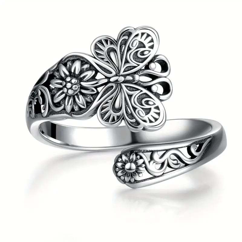 ✨Nature-Inspired Design: The ring features a beautifully detailed dragonfly and sunflower motif. symbolizing transformation. joy. and natural beauty. This design exudes grace and positivity. making it a perfect accessory to elevate your natural beauty and aura.🌻