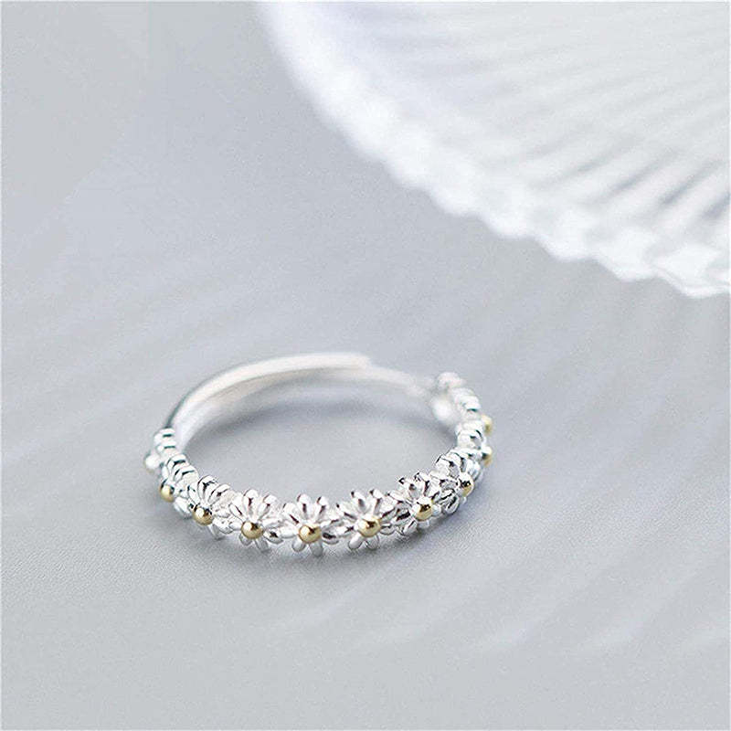 Adjustable Silver and Hand Painted Enamel Daisy Ring