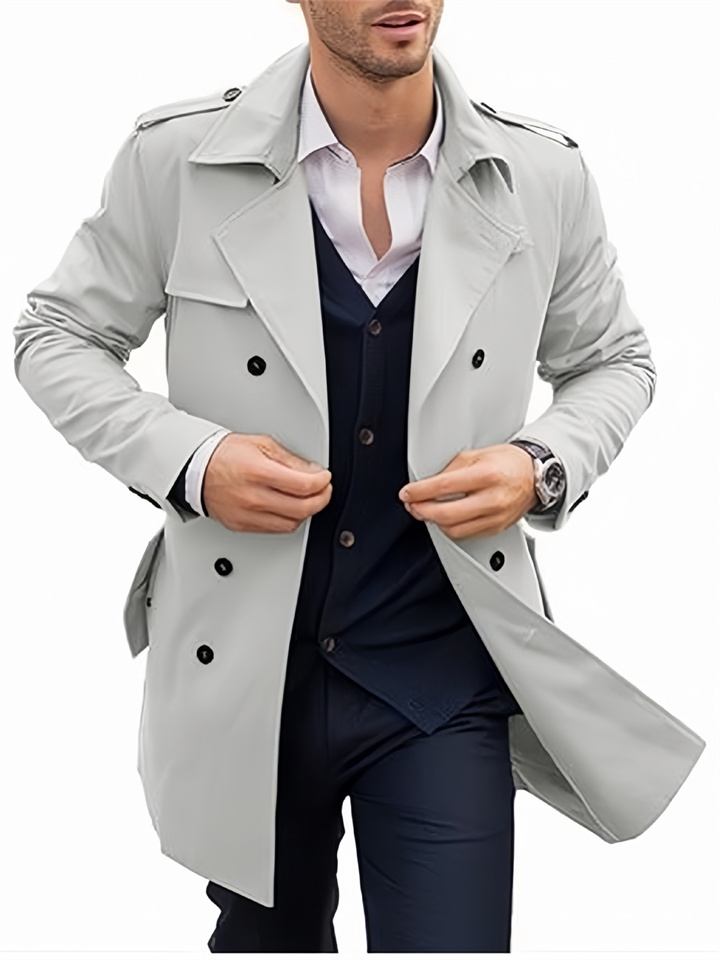 Autumn and Spring Men's Coat Long Double-breasted Casual Trench Coat Cardigan Jacket