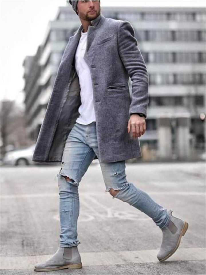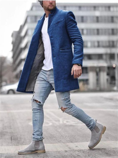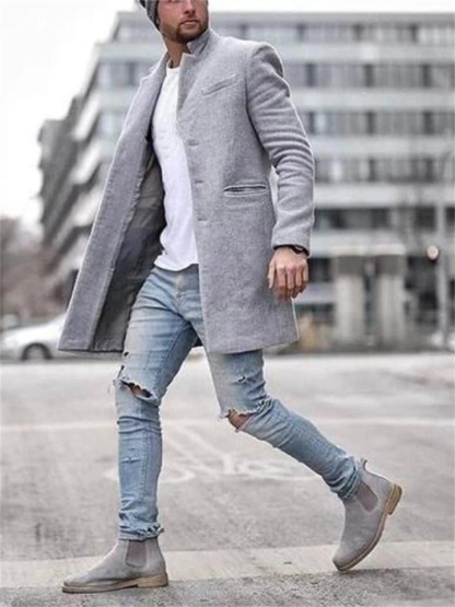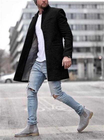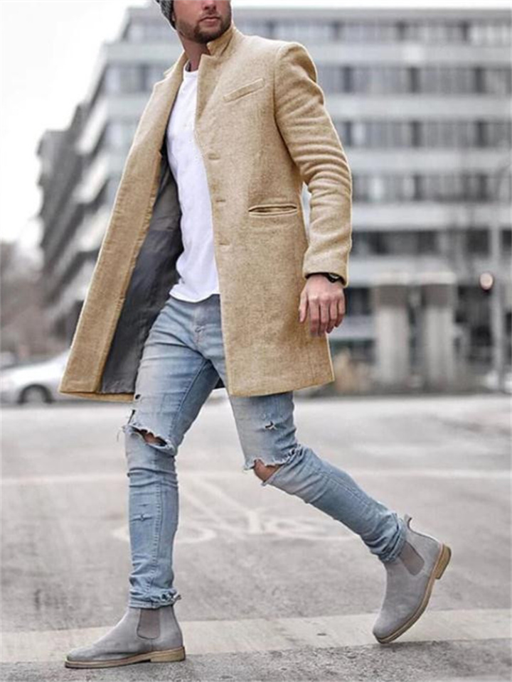 Autumn and Winter Fashion Trend Trench Coat Men's Jacket Lapel Phoenix Tweed Medium-length Coat