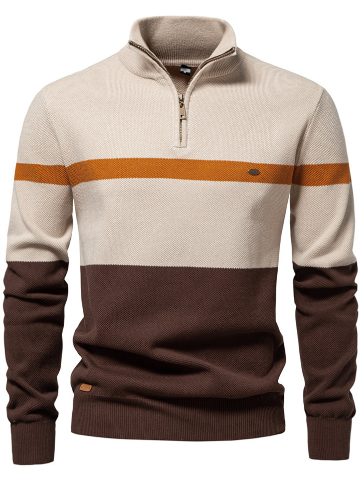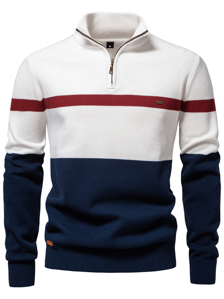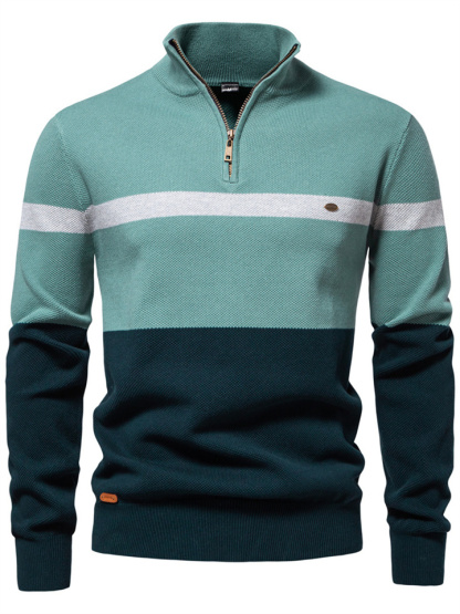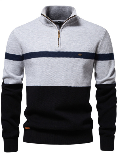 Autumn and Winter New Collar Men's Sweater Half-zipper Colorblocking Sweater