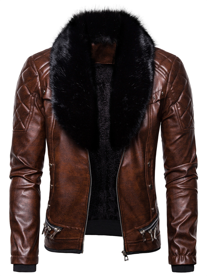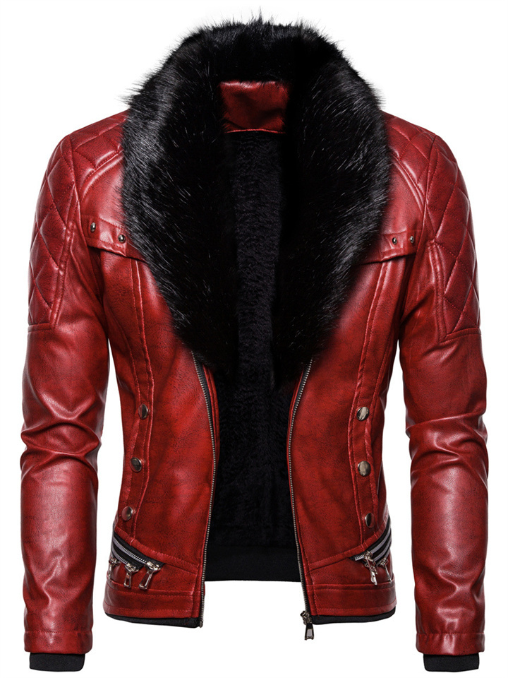 Autumn and Winter New Fashion Solid Color Button Collar Men's Leather Jacket