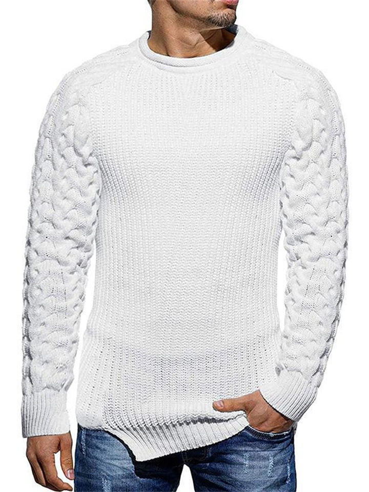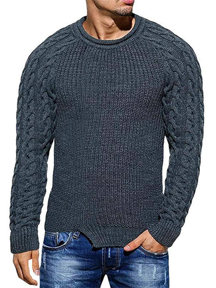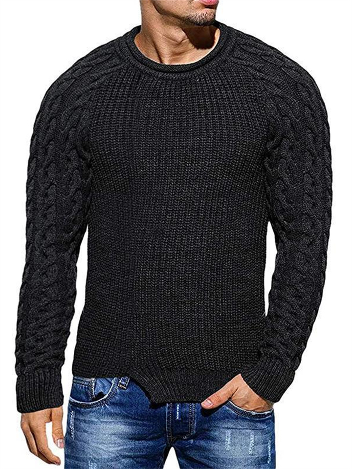 Autumn and Winter Sweater Men's Solid Color Round Neck Long-sleeved Knitted Tops