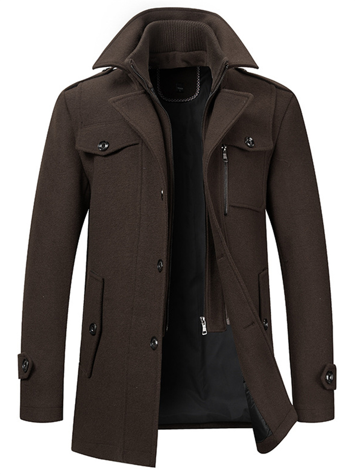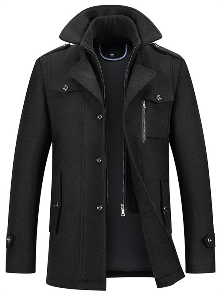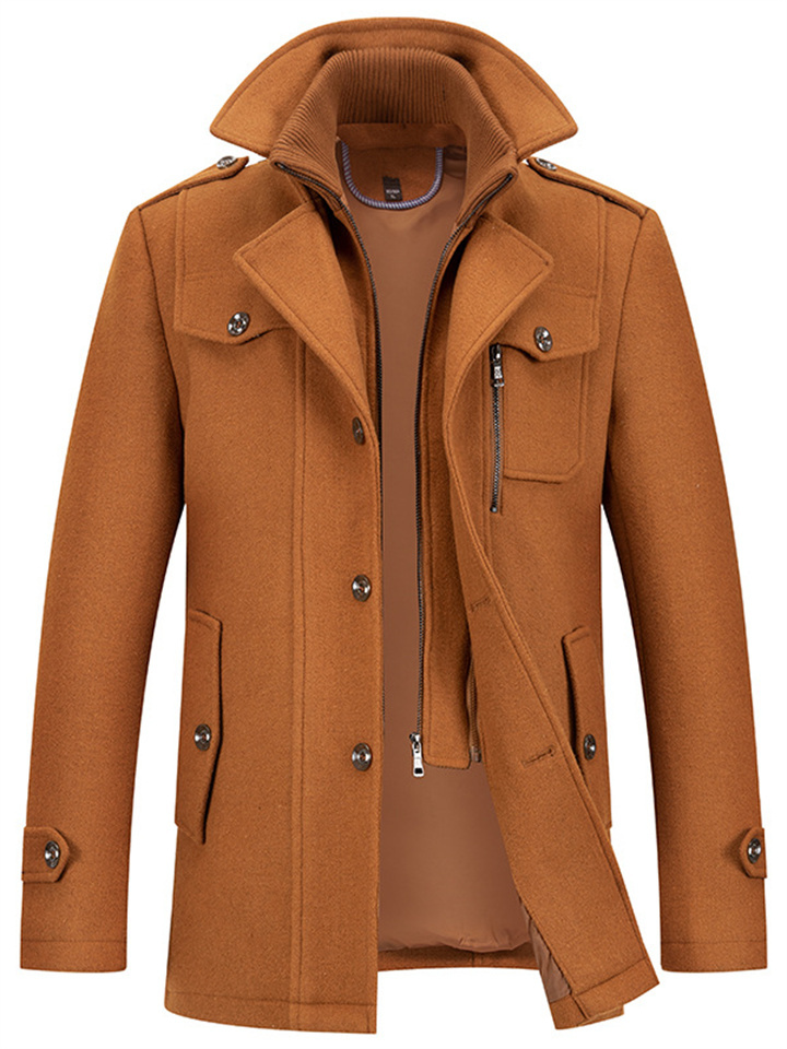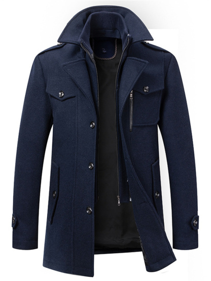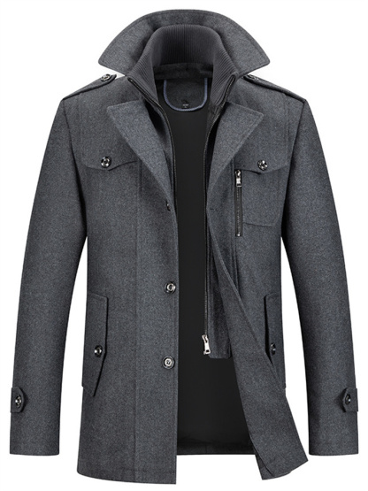 Autumn and Winter Tweed Coat Men's Fashion Middle-aged Double Collar Wool Coat Jacket