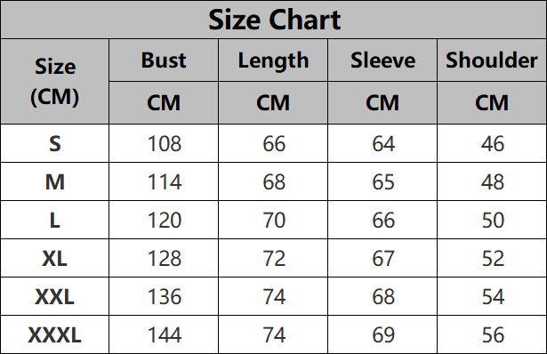 Sizes: S, M, L, XL, XXL, XXXL, XXXXL