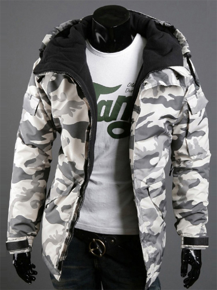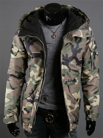 British Slim Collarless Long-sleeved Men's Jacket Men's Casual Camouflage Trend Men's Hooded Jacket