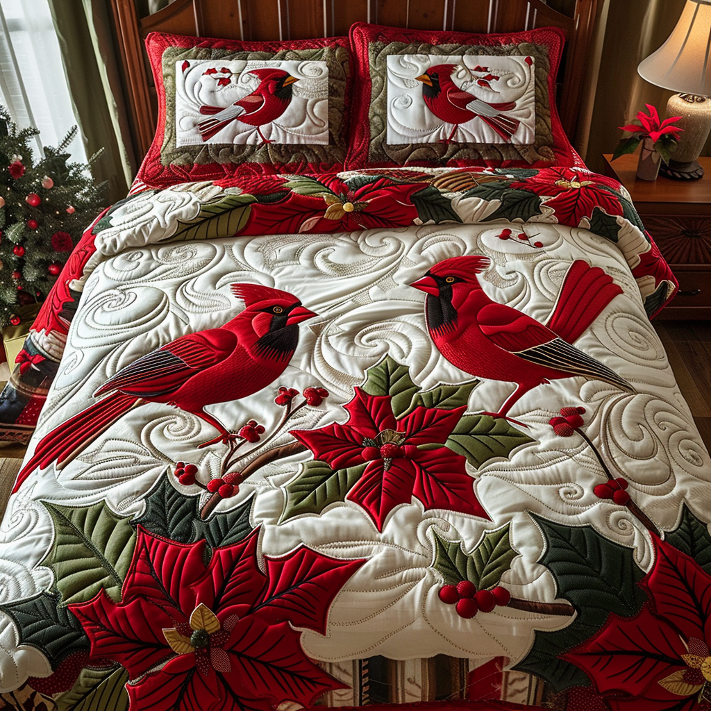 Cardinal Couple Quilted Bedding Set NCU0DV008