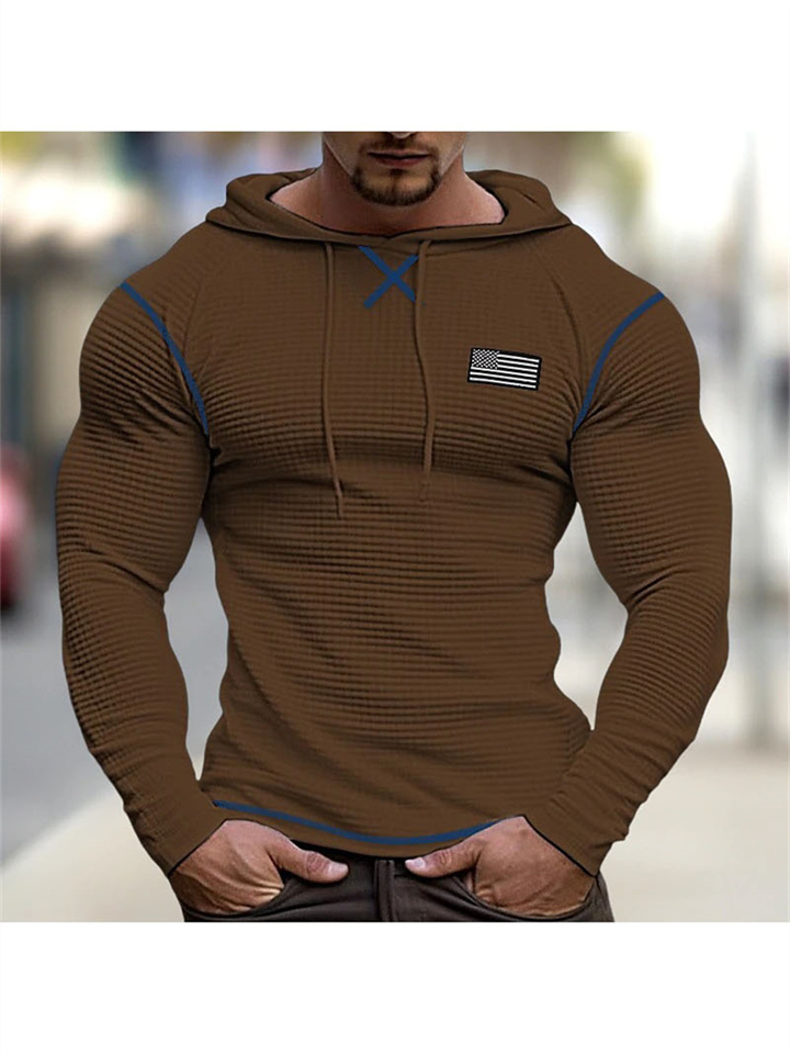 Casual Basic Men's Solid Color Round Neck Pullover Hooded Drawstring Waffle T-Shirt Tops Vacation Long Sleeve Casual Fashion