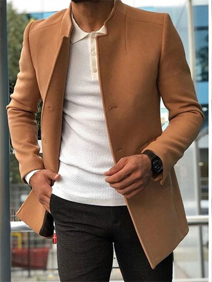 Casual Men's Suit Autumn New Trend Men Solid Color Slim Tweed Jacket