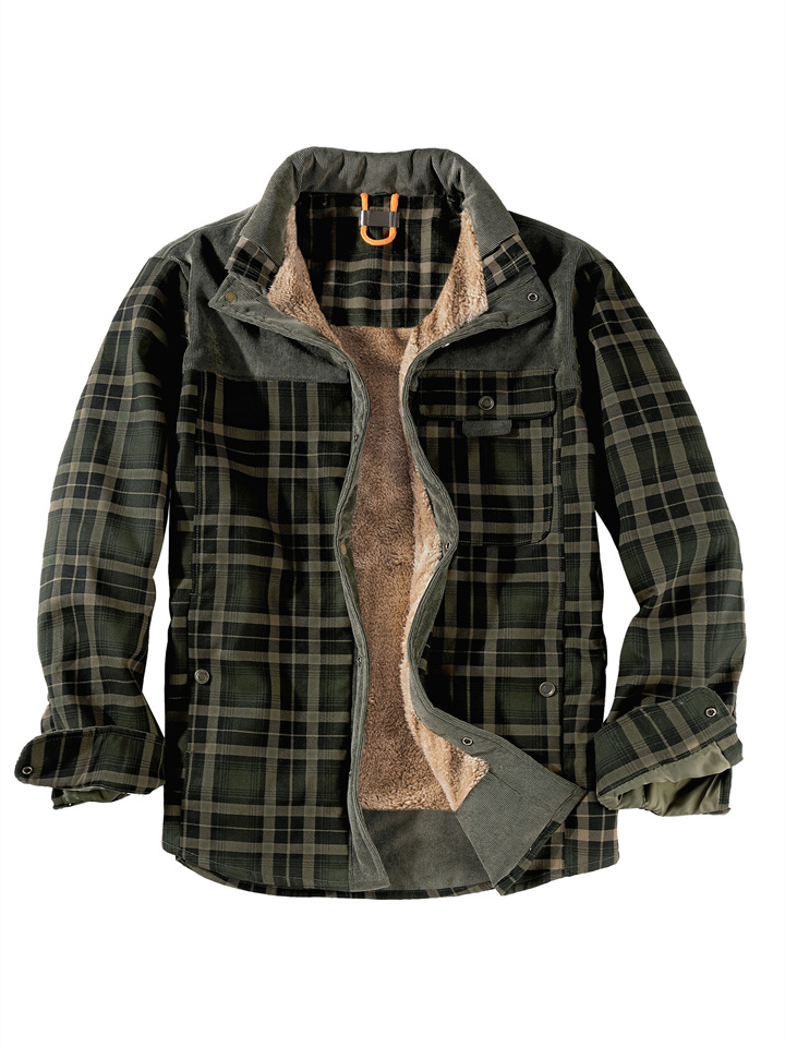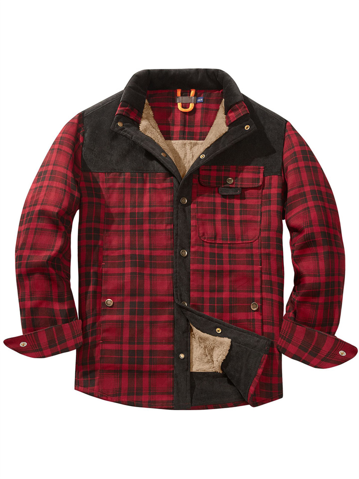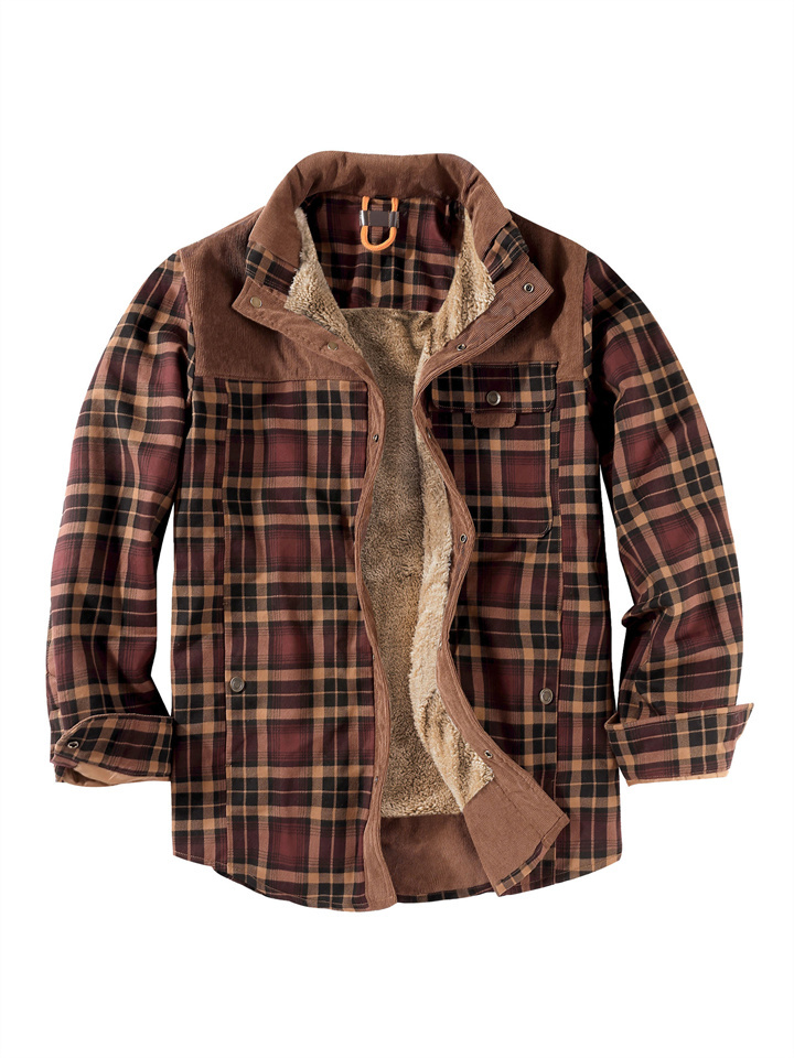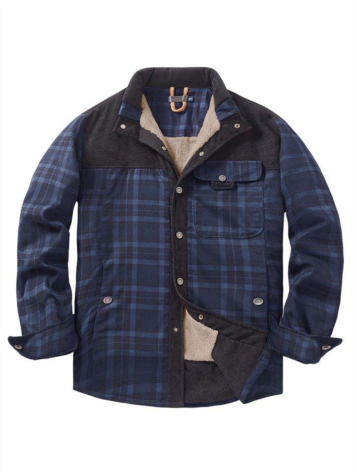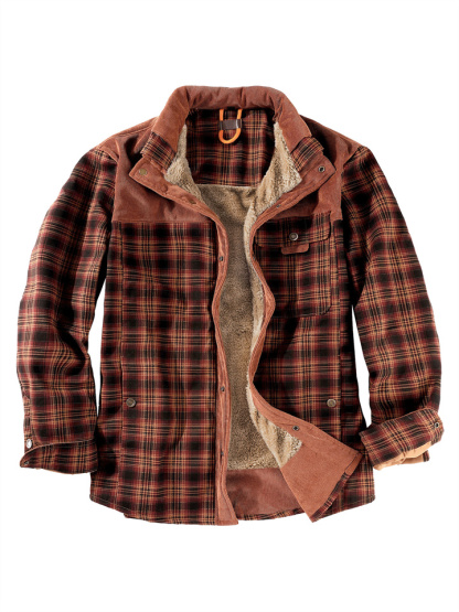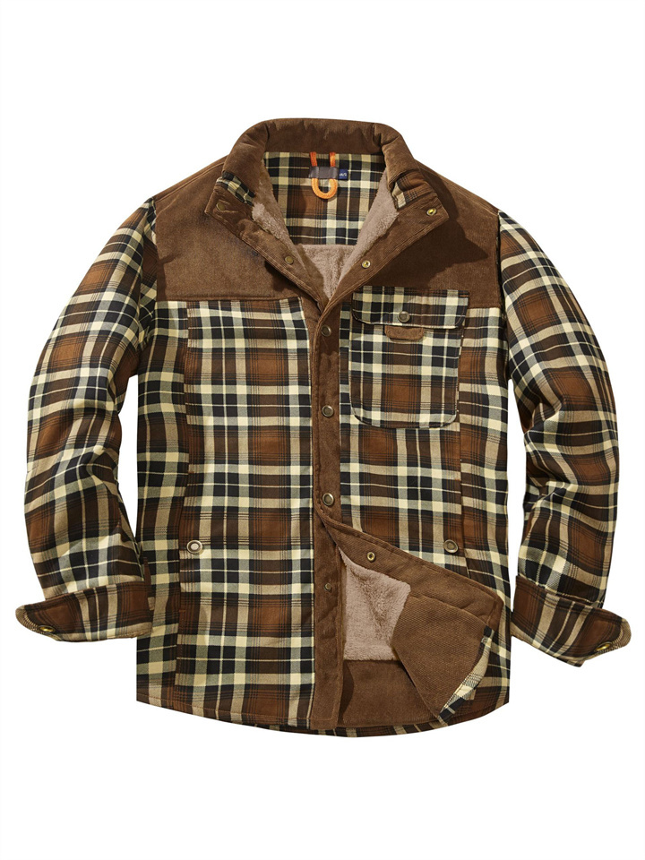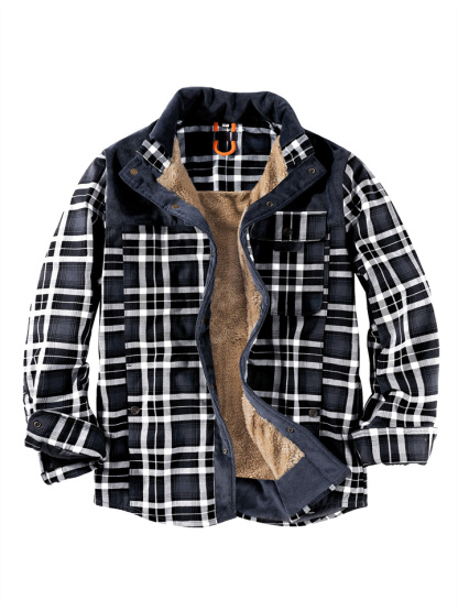 Casual Printed Long-sleeved Lapel Plaid Shirt Cardigan Jacket Men's Jacket Padded Plus Size Winter Warm Cotton Jacket
