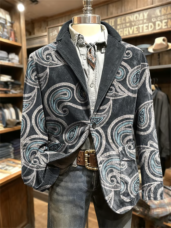 Christmas New Arrival Casual Suit Men's Corduroy Printed Jacket