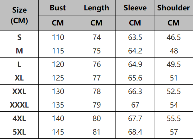 Sizes: S, M, L, XL, 2XL, 3XL, 4XL, 5XL