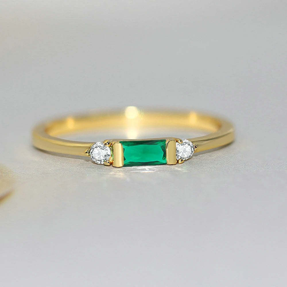 Classic Gold Green Stone & Radiant Ring