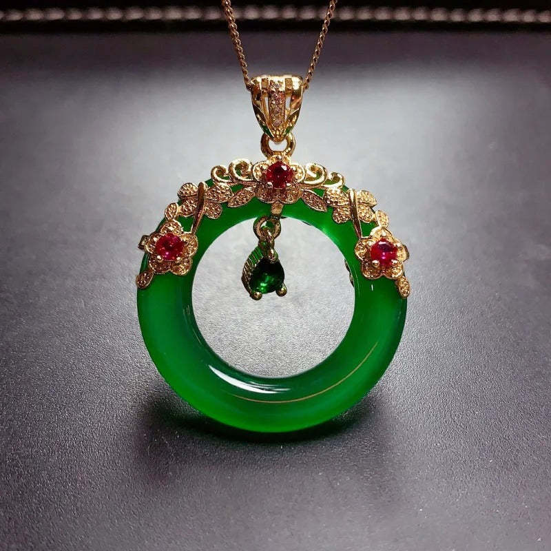 Classic Green Crystal Floral Ring Pendant Necklace