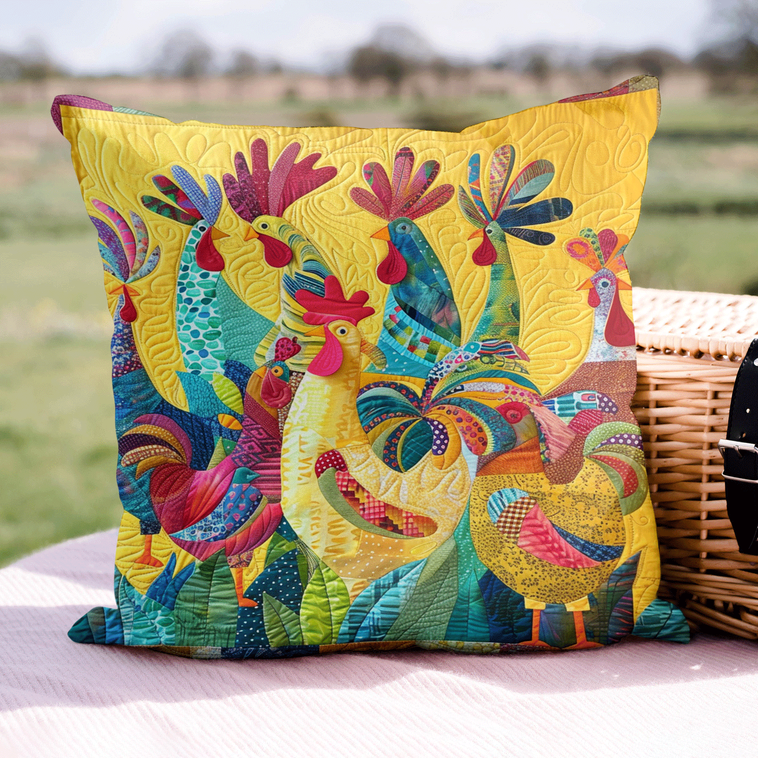 Colorful Cockcrow Quilted Pillow Case NCU0TH1199
