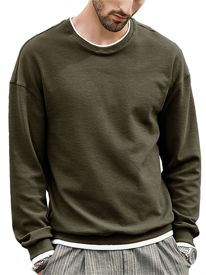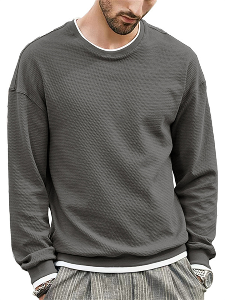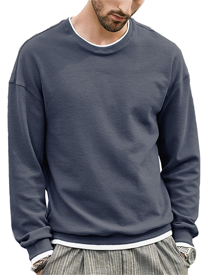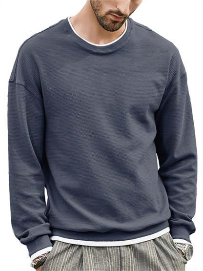 Daily Long-sleeved Round Neck Sweater Men's Men Loose Drop Shoulder Pullover Gray Blue Blue S-XXL