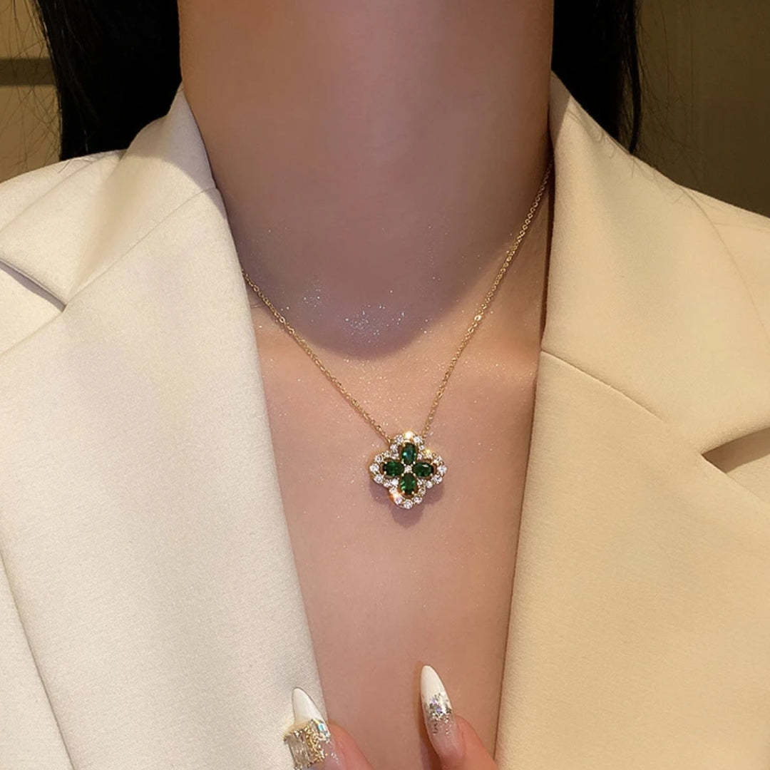 Emerald Shimmering Clover Necklace in Gold