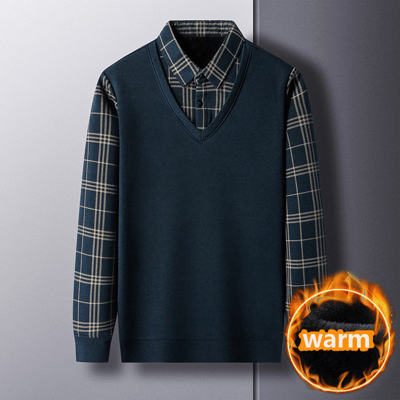 - EASY MATCHING - Fake Two Knitted Sweater is easy to match.Wearing classic fitted sweater alone in cool fall or having it on as a layer under a blazer in cold winter will keep you warm. You can also pair with a dress shirt and Button-ups, Jeans or Dress Pants to make look your gentlemen.
