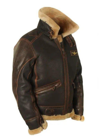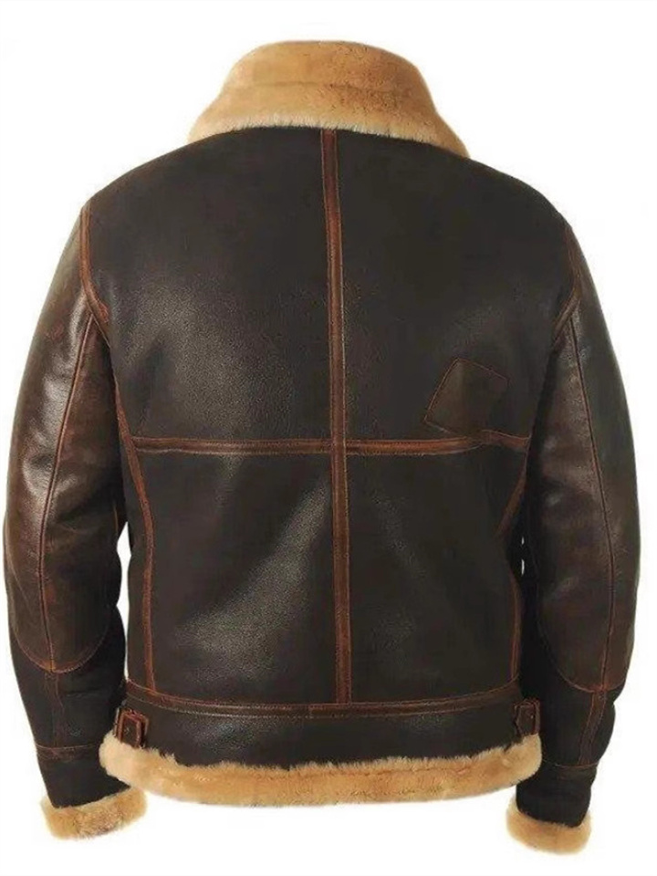Fall and Winter Brown Men's Lapel Casual PU Leather Jacket Padded Jacket