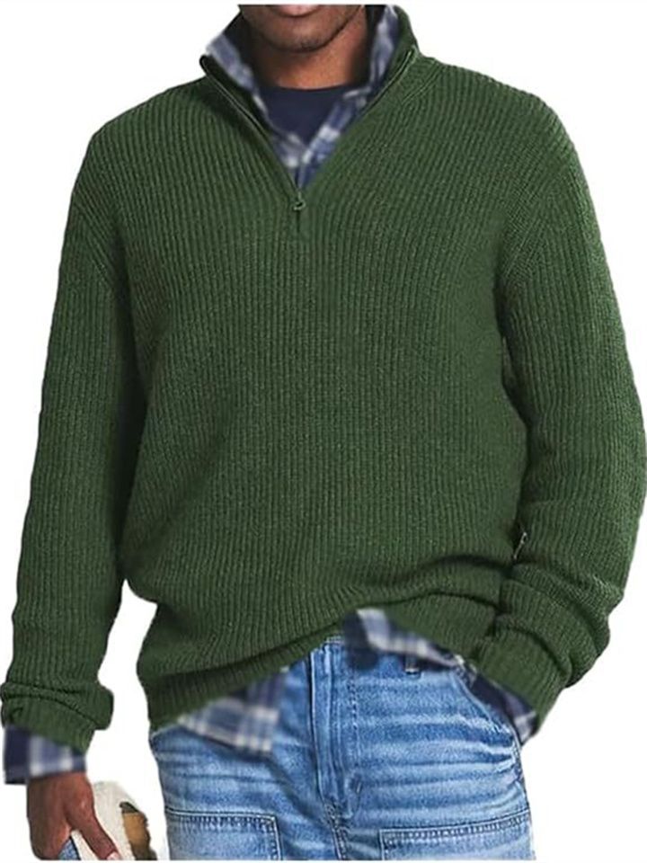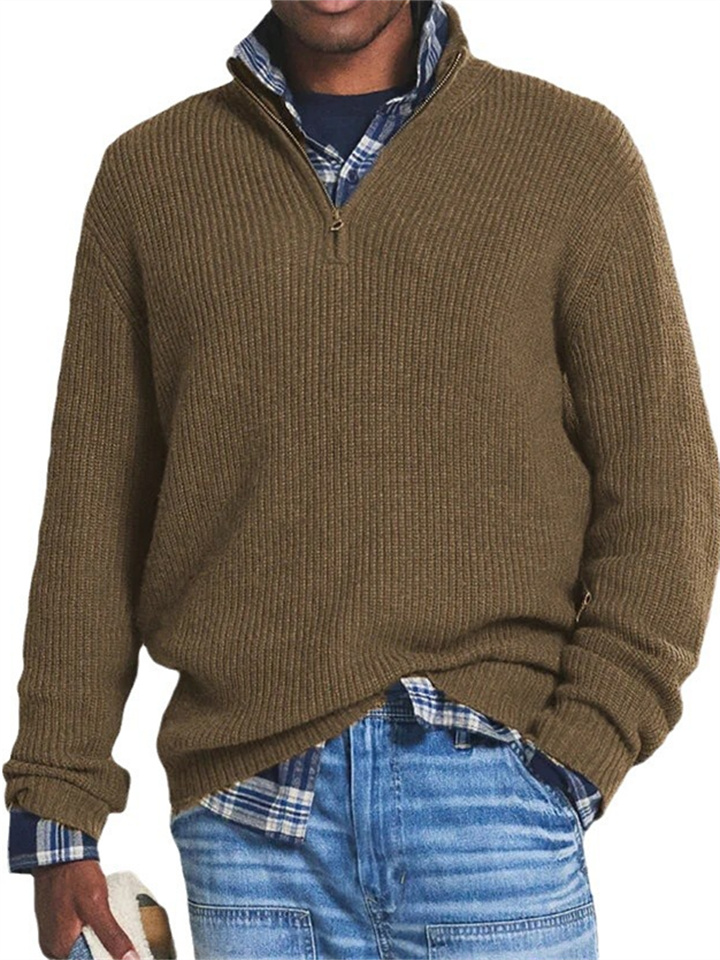 Fall and Winter New Men's Business Casual Loose Zipper Collar Sweater