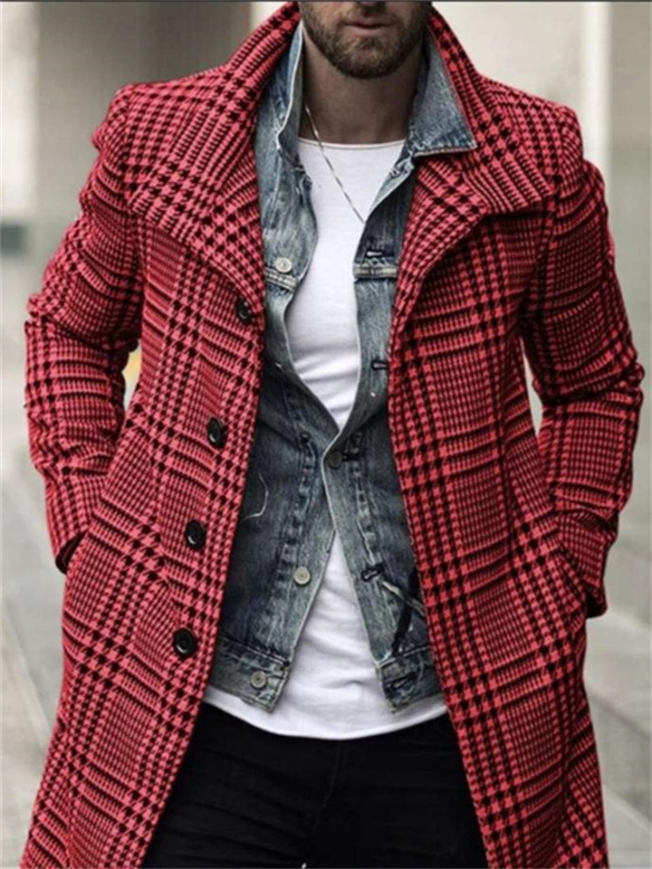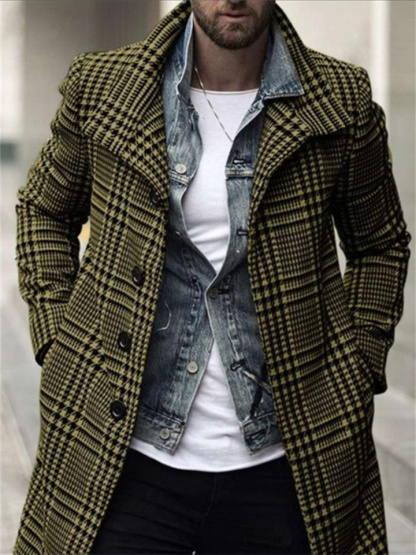 Fall and Winter New Side Seam Pockets Fashion Plaid Lapel Coat Casual Fashion Medium-length Coat