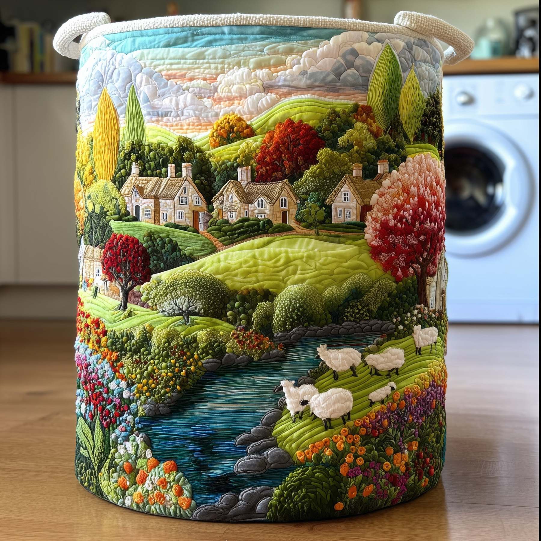 This quilted laundry basket is crafted from high-quality fabric that maintains its shape and stands upright on its own, even when empty.