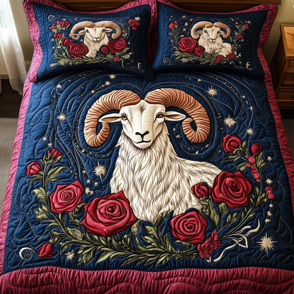 Foral Haven Bighorn Sheep 3-Piece Quilted Bedding Set GFTOTP2944