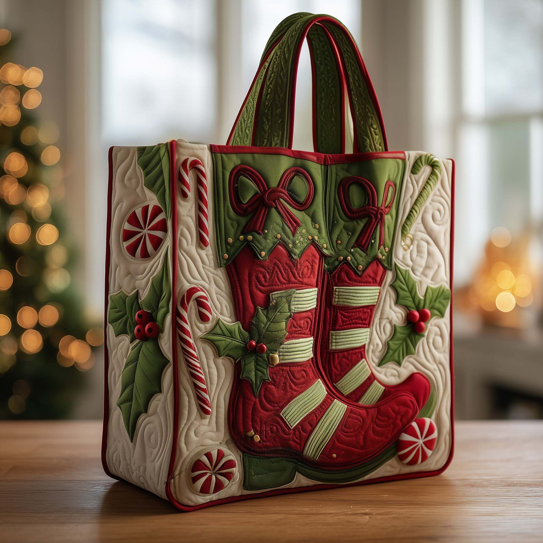 Enhance your carrying convenience with our gusseted quilted tote bag – a perfect blend of festive charm, everyday practicality, and extra room for all your essentials.