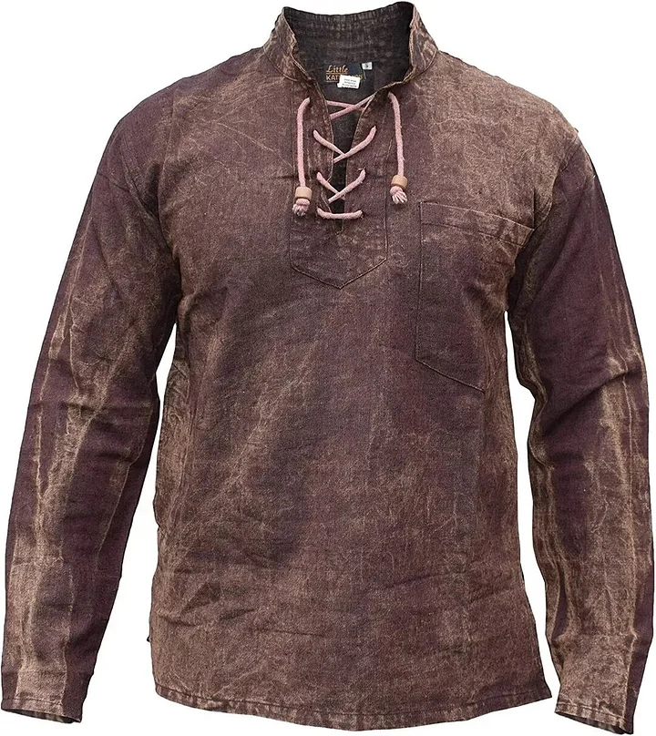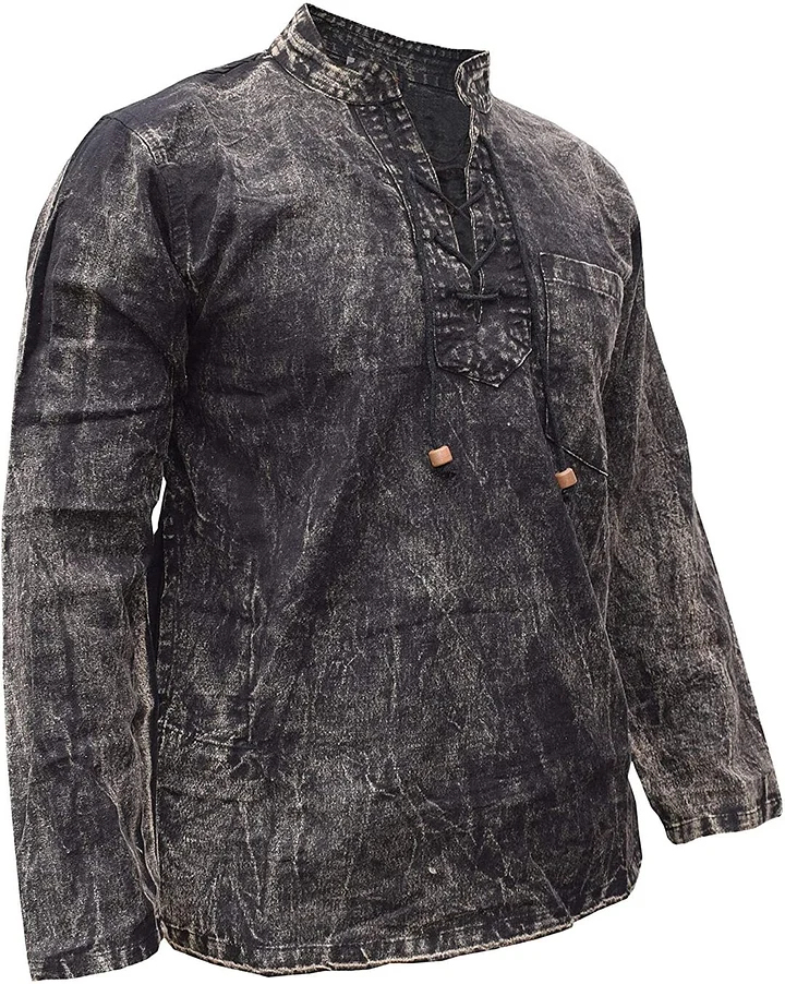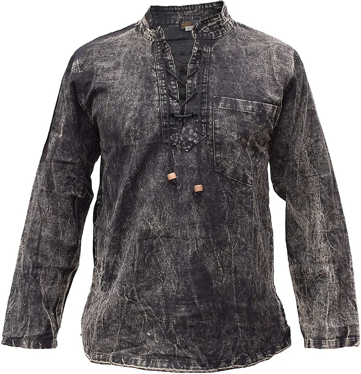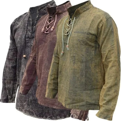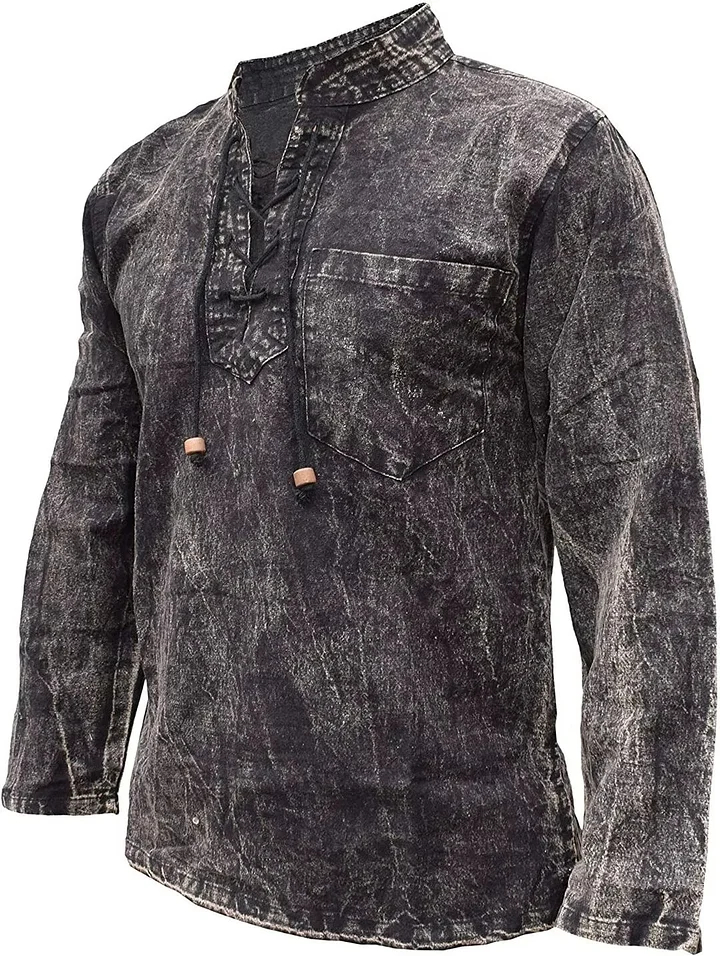 Gheri Mens Hemp Cotton Lace Up V Neck Grandad Shirt