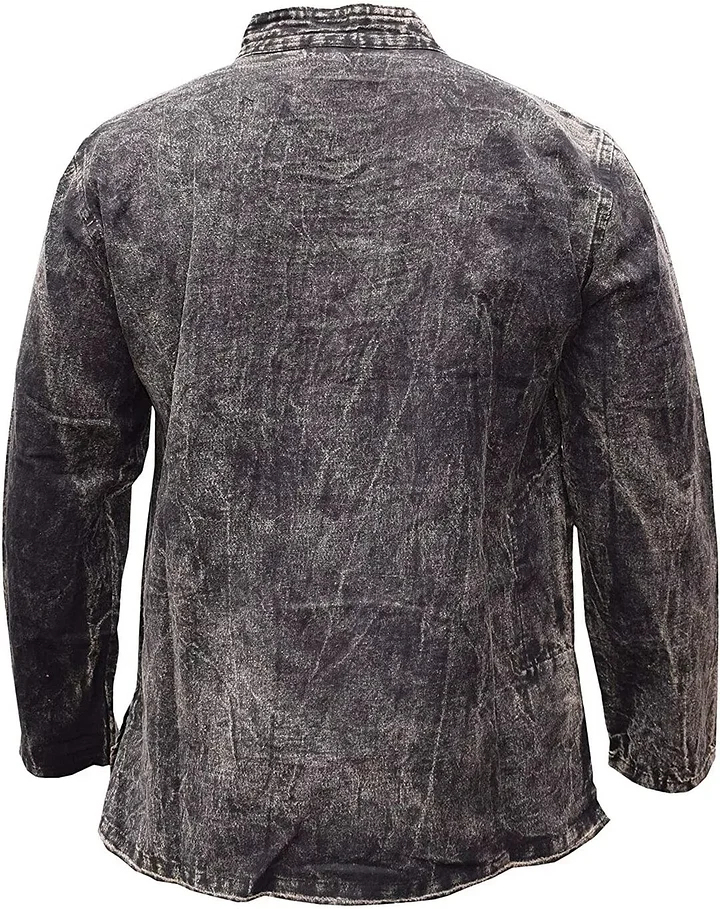 Handmade hemp cotton long sleeve shirt with grandad collar. Available in stone washed and non washed versions.
