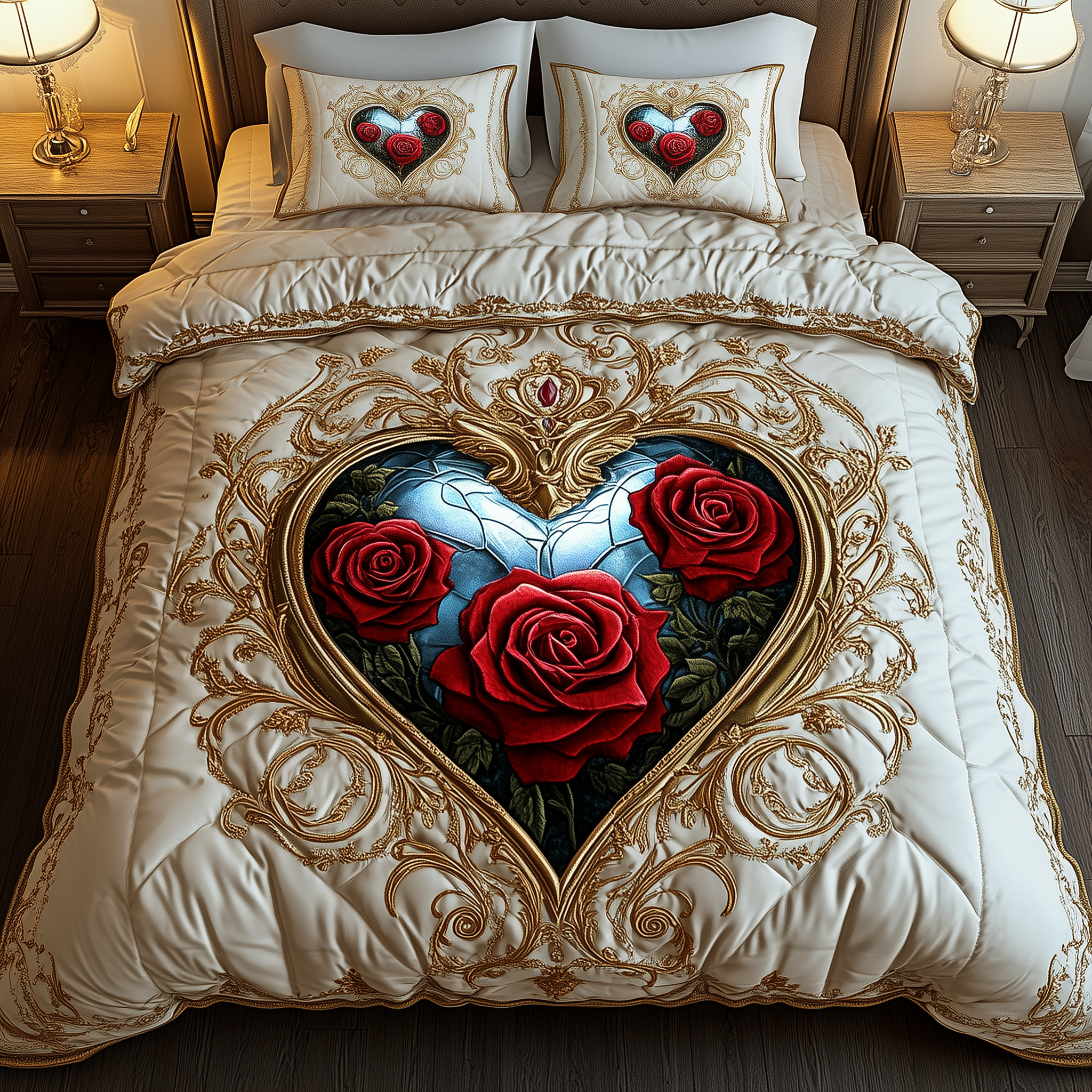 Heart of Roses 3-Piece Quilted Bedding Set GFTOHD1562