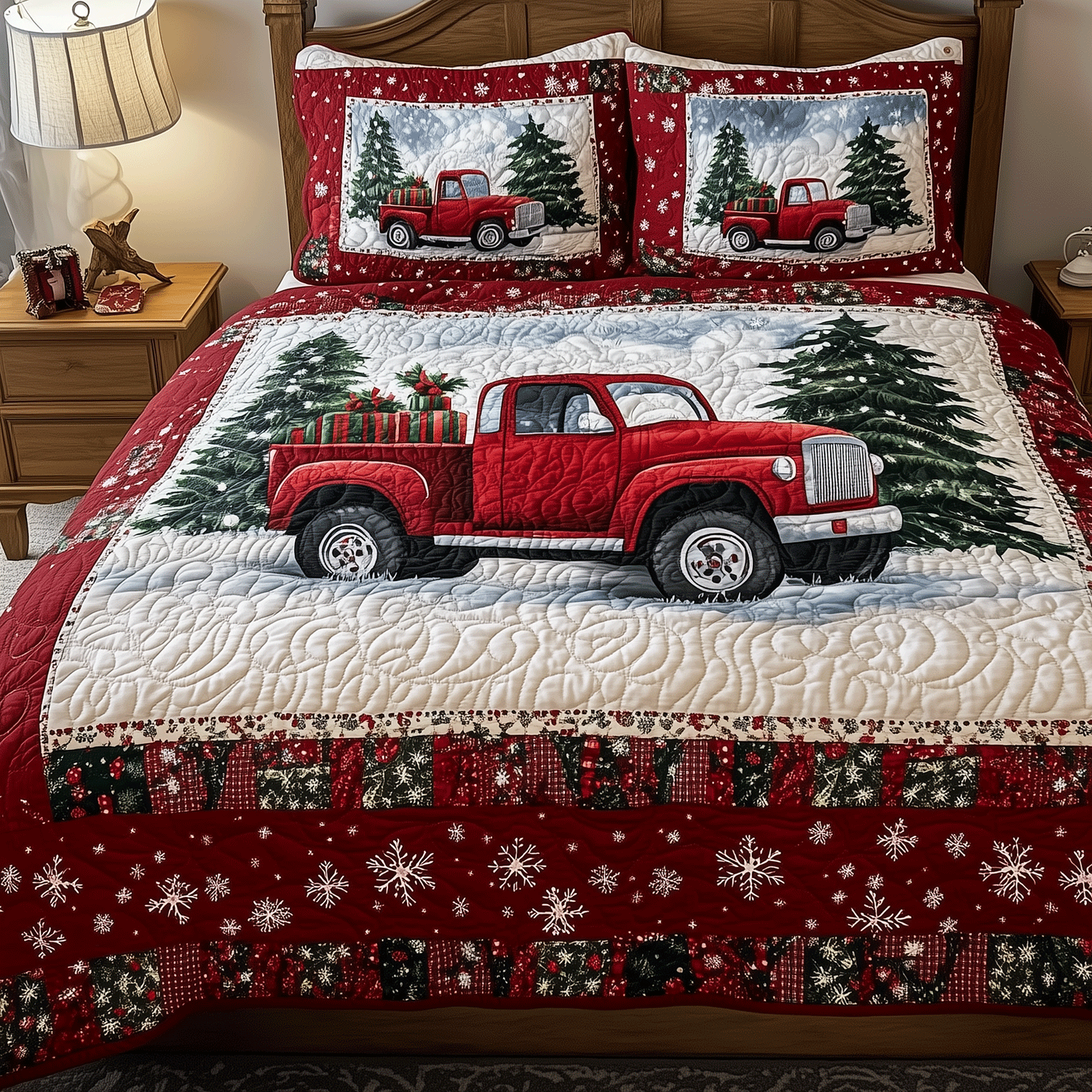 Truck of Cheer 3-Piece Quilted Bedding Set NCU0TH1952
